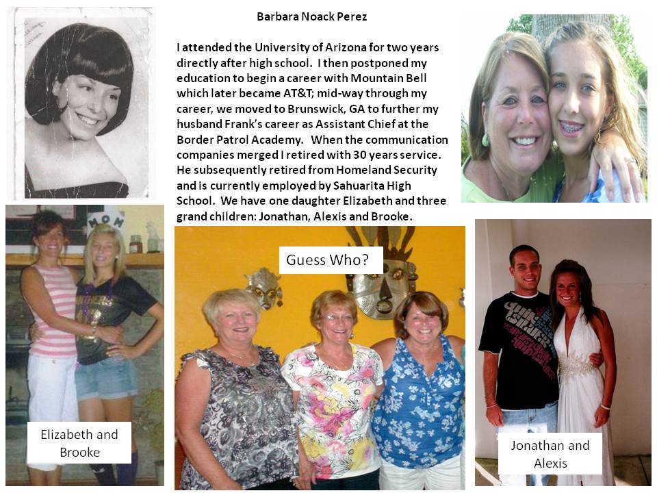 Dennis Nultemeier (class of '65) and I married in 1966 and I worked for the City of Tucson until my first son, Steve, was born in 1968. Another son, Scott, came along in 1971. Dennis and I divorced in 1984; we have four granddaughters, ranging in age from 4 to 15. Over the years I have worked for the City of Tucson, the University of Arizona, TUSD, and was the Employment Coordinator for Tucson Electric Power Company for 17 years. In 1996, I took the Voluntary Severance Program from there and, guess what? I'm back working for the University of Arizona - this time in the Office of the Vice President for Research, Graduate Studies, and Economic Development. I met my current husband, Wolfgang, in 1987 and we married in 2003 (took 16 years to decide to take a chance on marriage again -- wanted to make sure this time, ha!). Wolf enjoys skiing so I tried it (I'm no good at that) and at one time, we were certified scuba divers. In his younger years, Wolf also sky-dived but I told him there was no way I was going to jump out of a plane! We've slowed down a bit and our current hobbies are dancing, reading (which I always loved), gardening, and traveling. We have been on a cruise to Puerto Rico, San Juan and St. Thomas, to Hawaii once, and on a whirlwind 3-week trip with friends to Spain, England, Morocco, and Munich, Germany for an Oktoberfest. Wolf is from Bavaria and I'd like to go back to southern Germany someday - it was beautiful and GREEN! I'm enjoying reading about everyone and am looking forward to the reunion and seeing everyone again. Take care. |