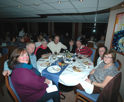 | We were fortunate to sit with the same people for every meal, Nelson and Lore from Colorado, Ray and Diane from Ontario (Canada) and our friends Steve and Evelyn from Encinitas. | |