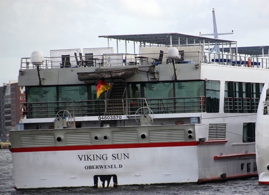| Another reason we came to Europe was to take a river cruise up the Rhine River from Antwerp through Belgium, through the Netherlands, down to Germany and France and ending in Basel, Switzerland. This boat was our home for two weeks. We found ourselves in steerage, and when we looked out the window, we were on par with the passing ducks. Apparently, we didn't pay enough to rate a room with a view. | |