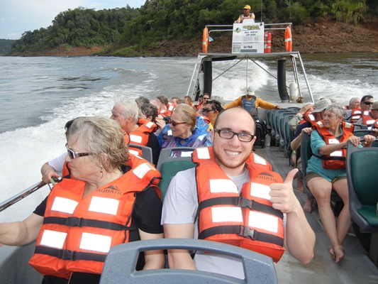 | After the walk in Brazil and a walk on the Argentinian side, we boarded Zodiac boats for an up close experience in the Falls. | |